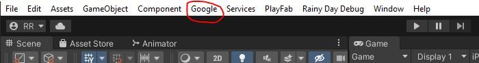 - If everything goes well, you should now have a Google toolbar option in your Unity Editor