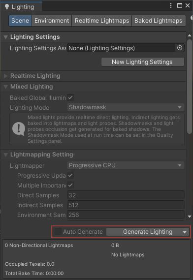 From the toolbar again, go to Window -> Rendering -> Lighting -> have Auto Generate unchecked -> then regenerate lighting by pressing the Generate Lighting button with a down arrow icon.